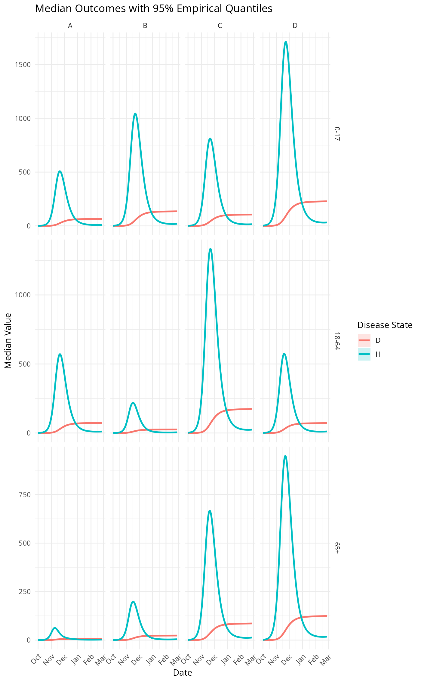 data.tablewith one row per date–subpopulation–disease state–instance combination. Typical columns include:date: calendar date (Date)age,race,zone: demographic categories (if present in the population mapping)disease_state: compartment or flow label (e.g.,S,E,I_symp,H,R,D,n_SE,n_IsympH, etc.)value: population count or daily flowinstance: simulation instance index (1, 2, …)